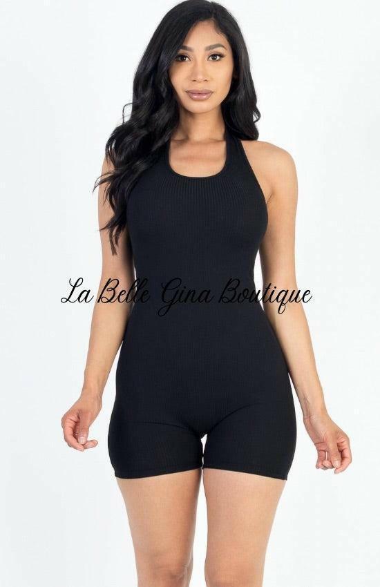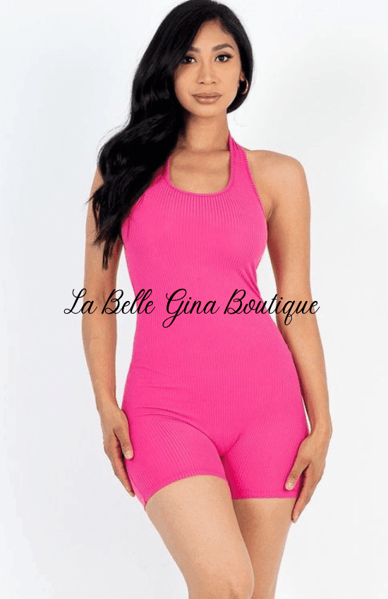 Lora Ribbed Halter neck Romper - La Belle Gina Boutique