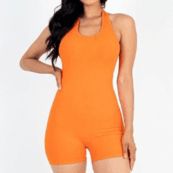 Description: - Ribbed Halter Neck Backless Romper
