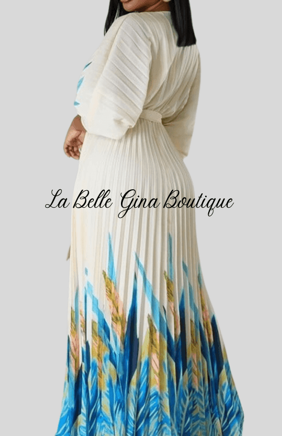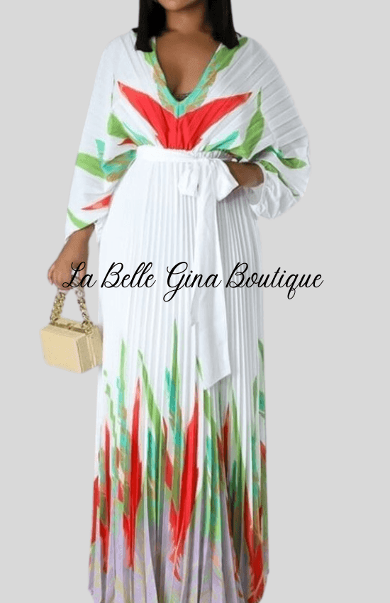 Malia Pleated Self Tie Waist Maxi Dress-White