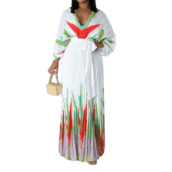 With its pleated design and self-tie waist, this dress accentuates your figure in all the right places, giving you a flattering and feminine silhouette. The flowing maxi length adds a touch of sophistication, while the crisp white color exudes a sense of purity and grace.