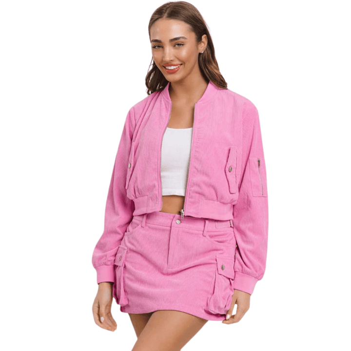 Elevate your wardrobe with the Maria Corduroy Jacket Set in Pink. This stylish ensemble combines a chic corduroy jacket with matching bottoms, offering both comfort and flair. Perfect for layering, it's ideal for any season and ensures you stand out effortlessly. Whether you're heading to brunch or a casual outing, this set is a must-have for your collection. Embrace fashion with the Maria Corduroy Jacket Set and make a statement wherever you go.