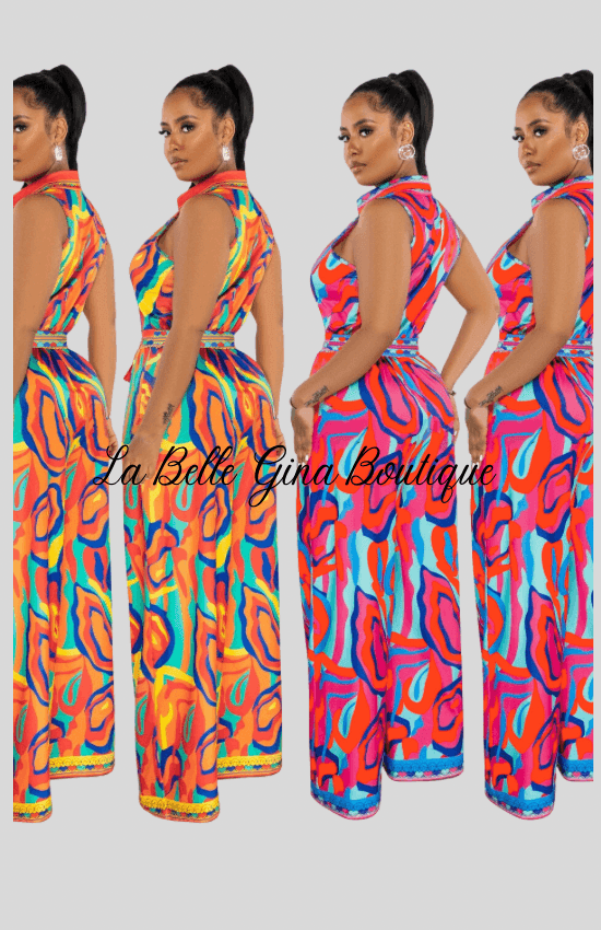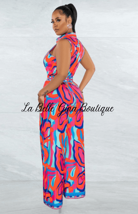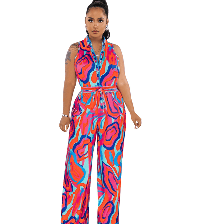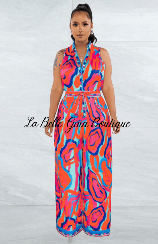 Marlie Ethic Sleeveless positioning Print Wide Leg Jumpsuit-Rose Red - La Belle Gina Boutique