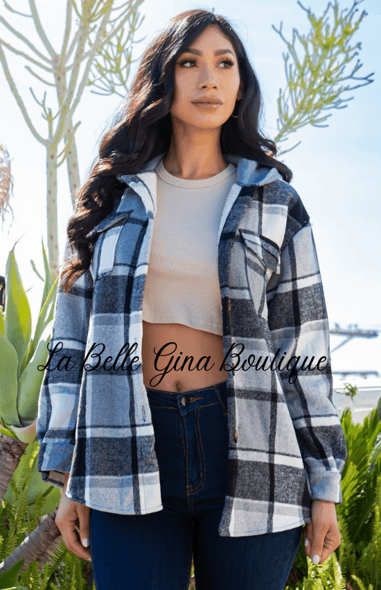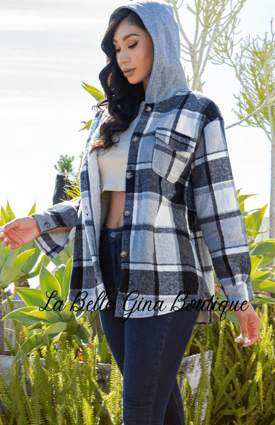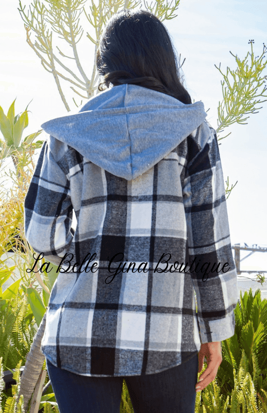Marlie Hooded Plaid Shaket Jacket - La Belle Gina Boutique