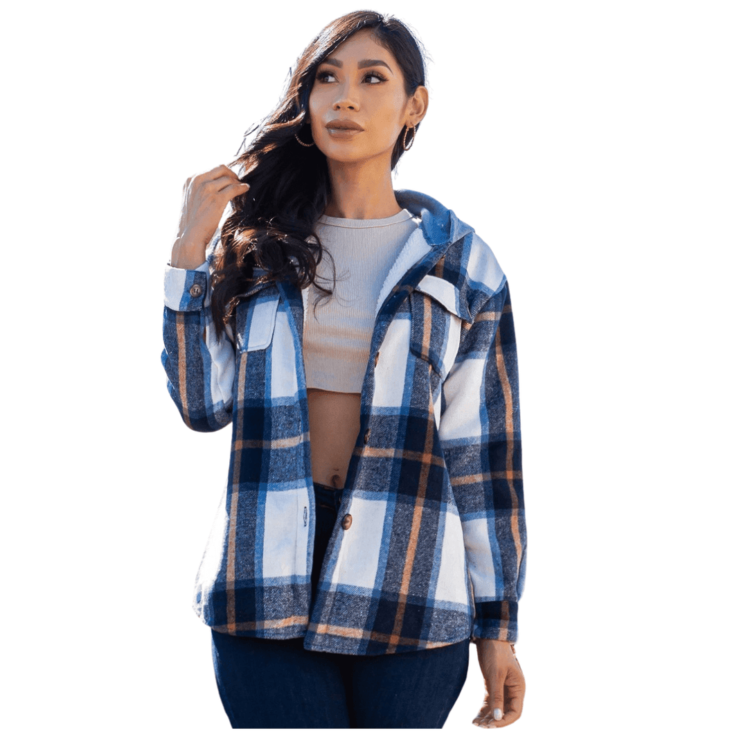 Introducing the Marlie Hooded Plaid Shaket Jacket - the perfect blend of style and comfort. Stay cozy and on-trend with its hooded design and timeless plaid pattern. This jacket is a must-have for any fashion-forward individual. Made with high-quality materials, it offers durability and warmth. Elevate your wardrobe with this versatile piece that effortlessly transitions from day to night. Stay chic and cozy with the Marlie Hooded Plaid Shaket Jacket.