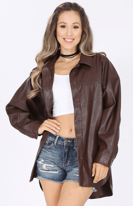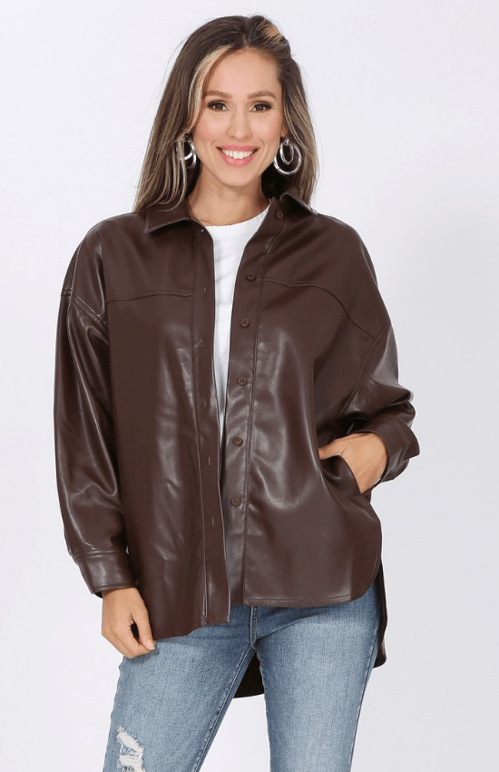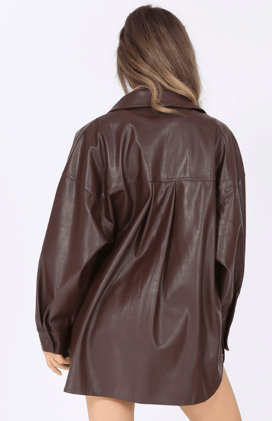 Marthe Faux Leather Long Sleeve Front button Jacket