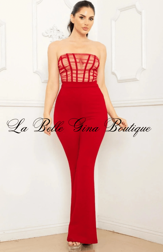 https://www.labelleginaboutique.com/collections/shop-al-womens-fashion Elevate your style with the Mesh Two Tone Wired Bust Sweetheart V-Neck Back Zipper Jumpsuit. This chic piece features a flattering sweetheart neckline that accentuates your silhouette, while the two-tone mesh design offers a modern twist. The back zipper ensures easy wear, making this jumpsuit perfect for both day and night occasions. Make a statement and turn heads wherever you go in this stunning outfit.