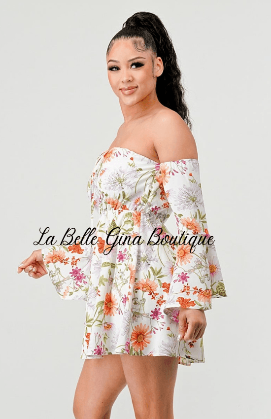 Mya Floral Off Shoulder Bell Sleeves Keyhole Fit Flare Mini Dress