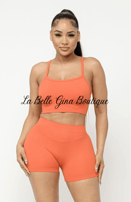Mya Seamless Spaghetti Strap Crop top set - La Belle Gina Boutique