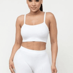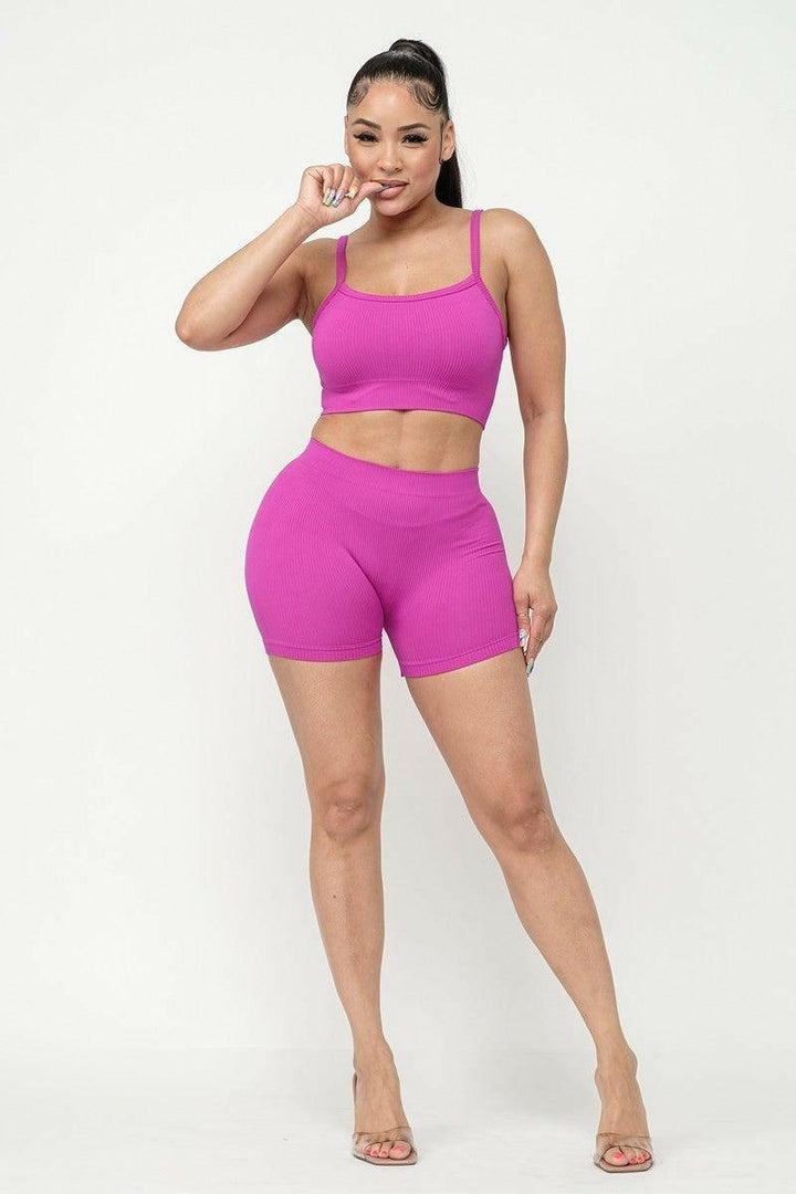 Description: Seamless Solid Basic Spaghetti Strap Crop Top and Shorts Set