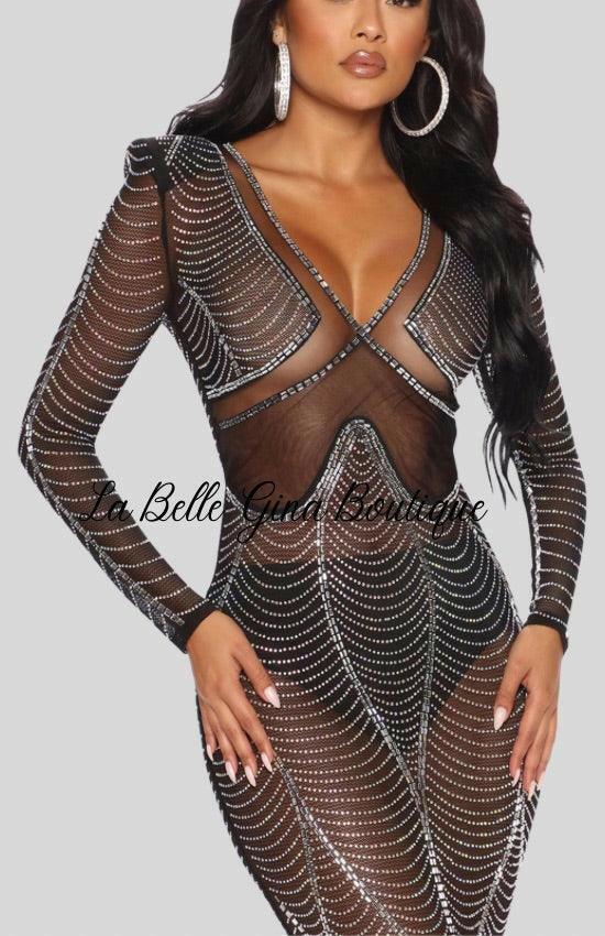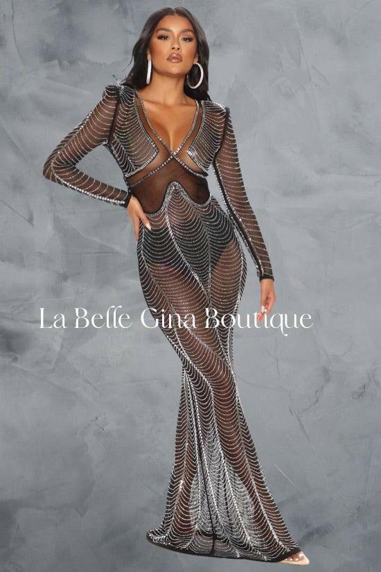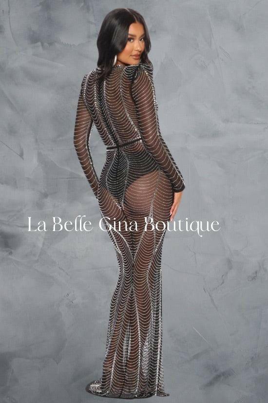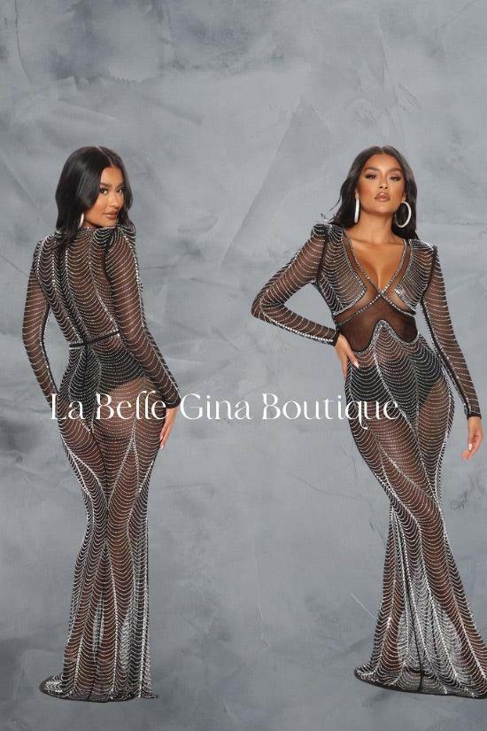 Step into the spotlight with our Women’s fashion sexy mesh perspective maxi hot diamond long dress. This stunning Black Maxi Dress embodies elegance and style, created for women with a bold, modern flair. It’s ideal for evening parties, special occasions, or moments when you want to shine with confidence.