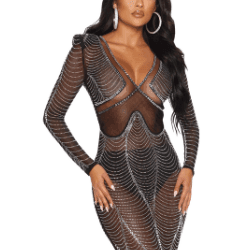 Undergarment is not included, which means you can personalize your outfit with a bodysuit or slip for your comfort. The sheer mesh, combined with sparkling rhinestones, creates a mesmerizing effect and highlights your unique sense of fashion. Whether it’s a glamorous party or a chic nightlife event, you’ll feel confident and dazzling.