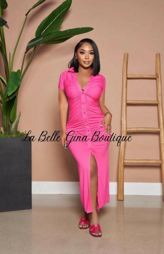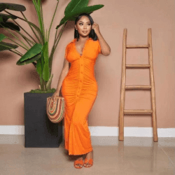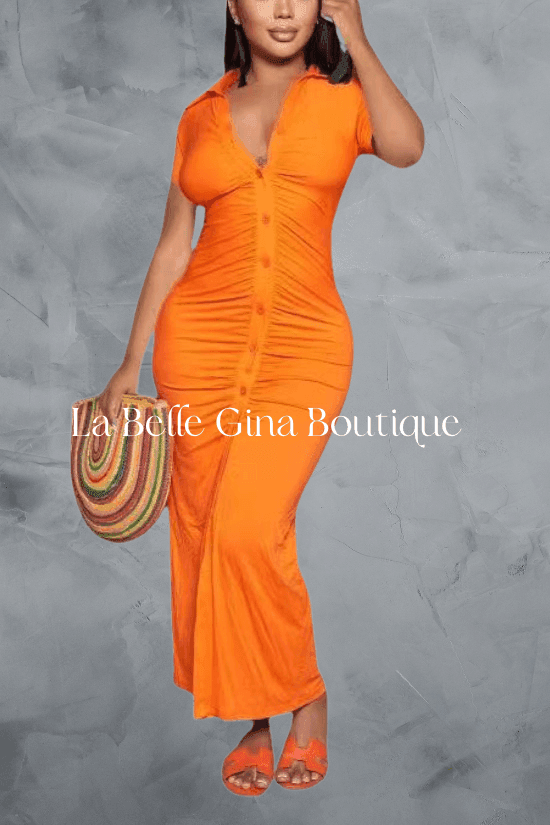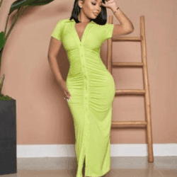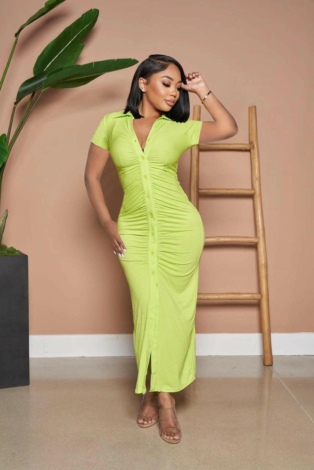 Designed to bring out the sexiest side of your silhouette, this Button Dress is the perfect blend of bold and elegant. The special ruched details not only flatter your figure, but they also offer a slimming effect, helping you feel both confident and glamorous. Whether you’re looking to refresh your closet or searching for a dress that stands out, this piece will quickly become your favorite.