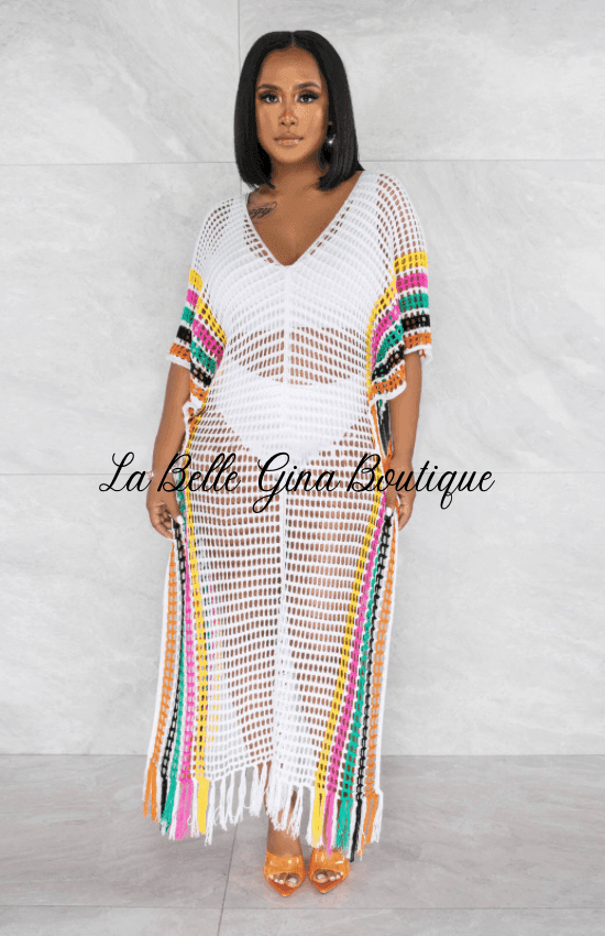 https://www.labelleginaboutique.com/collections/shop-al-womens-fashionThis Summer Ladies Sexy Crochet Knitting Tassel Colorblock Beach Long Dress is crafted with premium material. Its intricate crochet and knitting patterns create a unique and distinctive look. The dress showcases colorful tassels and a vibrant colorblock design that will make you stand out at the beach. This dress is a perfect choice during our special Beach Dress Sale event.