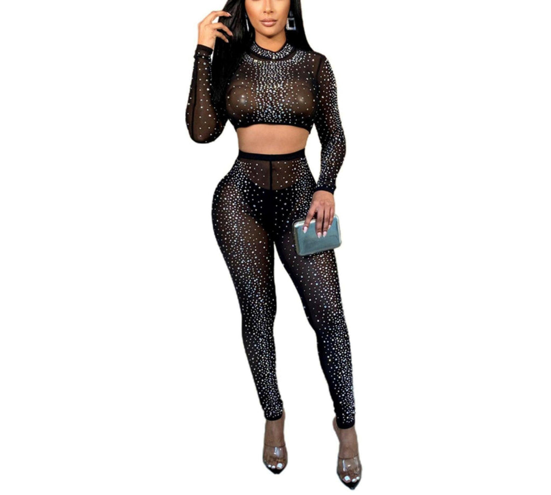 Introducing the ultimate statement piece for your wardrobe: the Mesh Sheer rhinestone crop top and leggings 2-piece set. Designed for those who love making bold fashion choices, this ensemble combines shimmering details with a daring silhouette. Featuring glittering embellishments, it shines brilliantly under any lighting, whether you’re out for evenings with friends or heading to exclusive parties. The included top is not just a layer; it is a true experience in modern, luxurious style. Paired with sculpted, figure-hugging leggings, the outfit brings both sophistication and unbeatable comfort, ensuring you turn heads wherever you go.