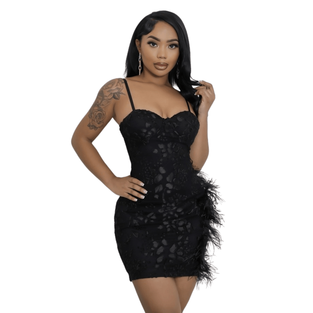 Introducing the Nellie Semi-Stretch Adjustable Straps Faux Feathers Mini Dress, a stunning blend of elegance and trendy allure. This mini dress features adjustable straps for the perfect fit, while the semi-stretch fabric ensures comfort and flexibility. The faux feathers add a touch of glamour, making it ideal for any occasion. Stand out in style and turn heads effortlessly with this must-have piece in your wardrobe. Perfect for nights out or special events, the Nellie dress will elevate your look and boost your confidence. Embrace your chic side today!