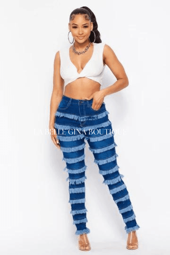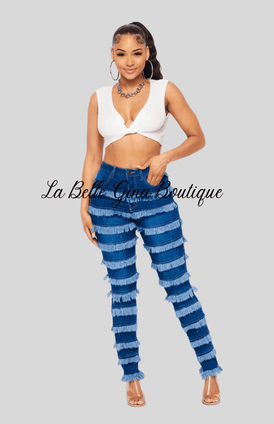 If you seek jeans that combine comfort with self-expression, our denim fringe jeans are the perfect choice. Instantly bring added personality to any outfit, moving seamlessly from day plans to evening gatherings. Each time you wear them, you’ll create a look that’s as unique as you are. Enjoy versatility and effortless chic in one signature piece. Let your personal style shine, step after step.https://la-belle-gina-boutique.myshopify.com/products/7307120246959