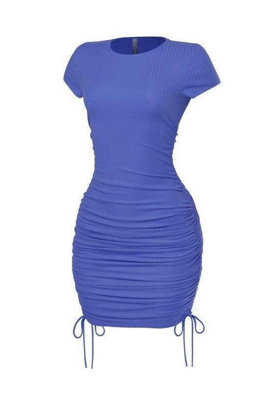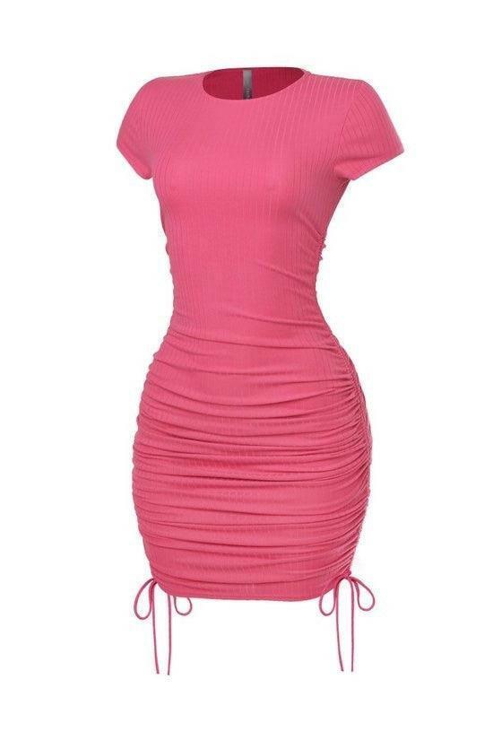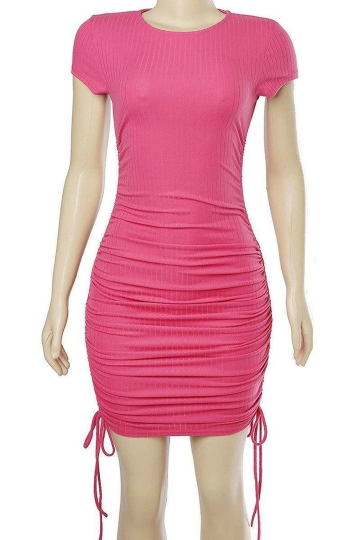 Rosy rib ruched round neck mini dress - La Belle Gina Boutique