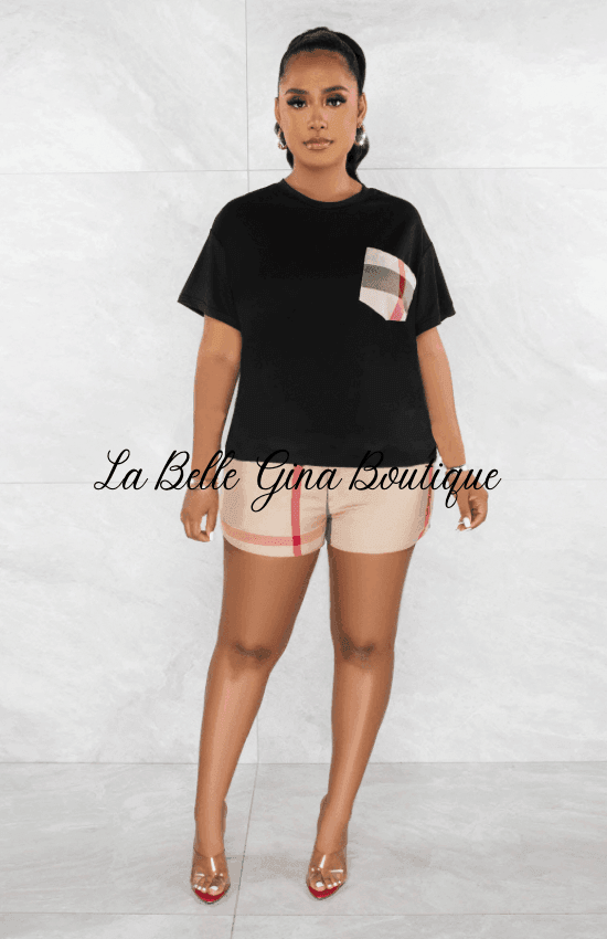 Samie Casual Patchwork Print T-Shirt Set Black - La Belle Gina Boutique