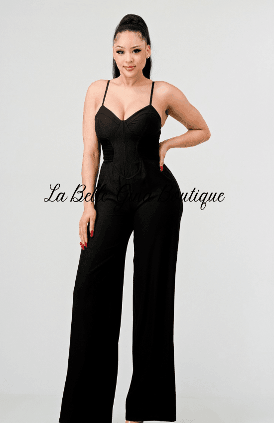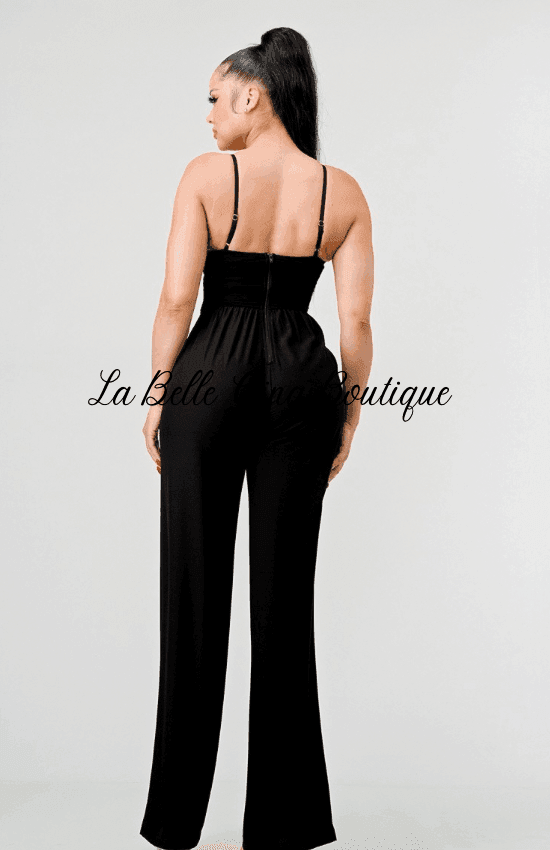Sandia Chic Silky Sweethart Side Mesh Jumpsuit-Black