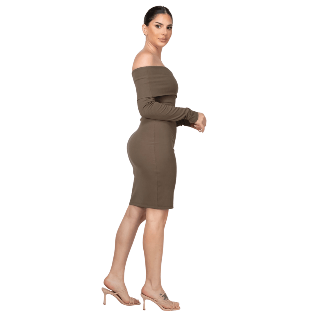Sandie Off shoulder Long Sleeves Ribbed Mini Dresss womenswear