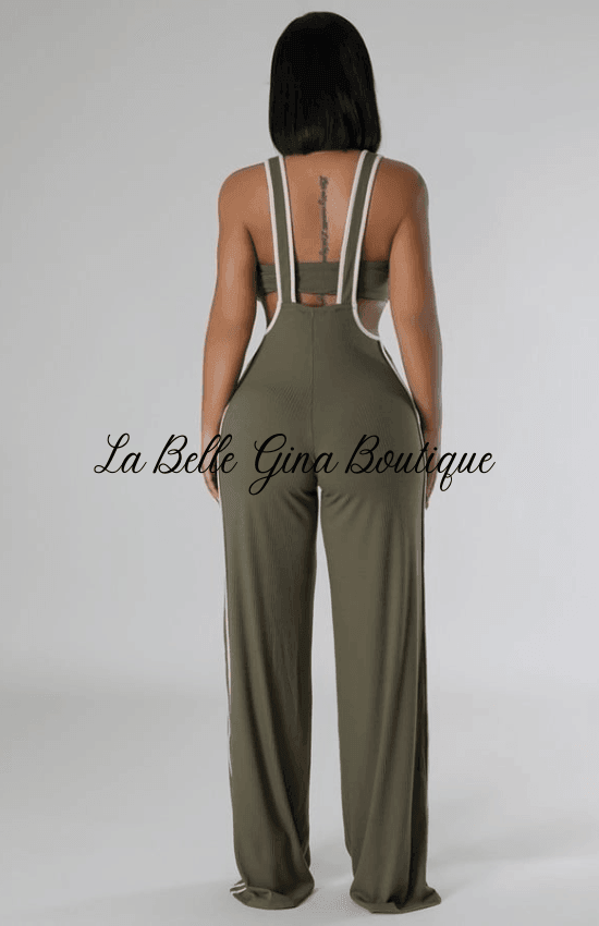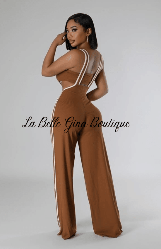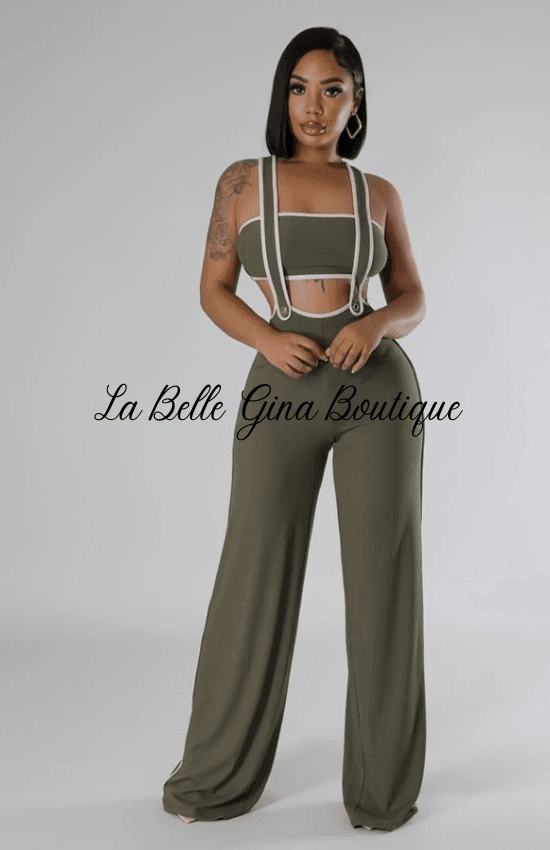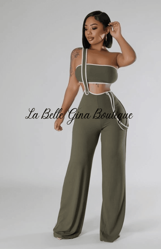 Introducing the Sandie Two Piece Set! This set includes a trendy tube top and stylish pants with a shoulder strap. Enjoy effortless style with this chic ensemble.