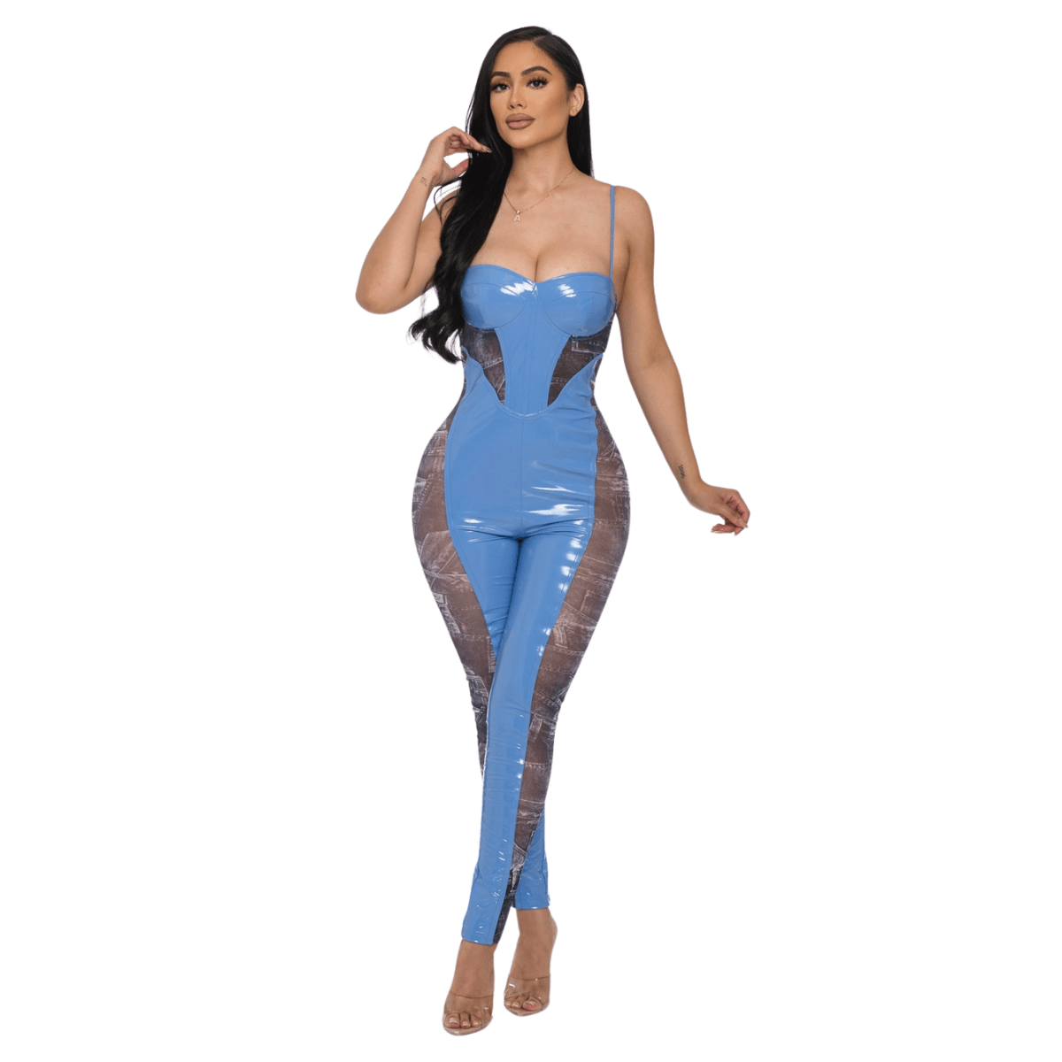Introducing the SandieLatex Padded Bra Side Mesh Stretch Jumpsuit, where style meets comfort. This jumpsuit features a flattering padded bra design for added support, complemented by alluring side mesh details that elevate your look. The stretchy fabric ensures a perfect fit, allowing for ease of movement throughout your day. Ideal for both casual outings and special occasions, this versatile jumpsuit is a must-have addition to your wardrobe. Embrace confidence and elegance with SandieLatex.