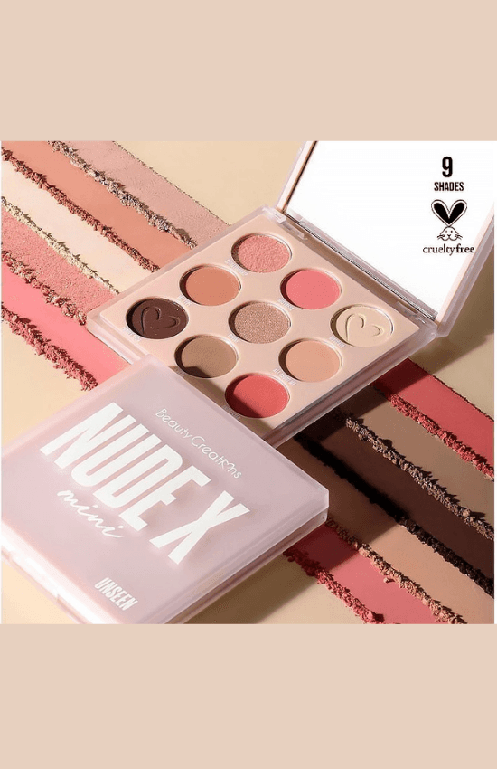 Sara Nude X Unseen Mini Shadow Palette. Features a 9 pan color palette with soft velvet mattes, highly pigmented formula with long lasting wear. Mirror attached. Travel friendly.