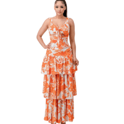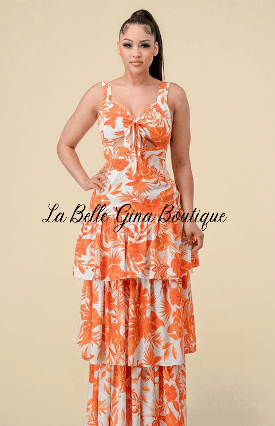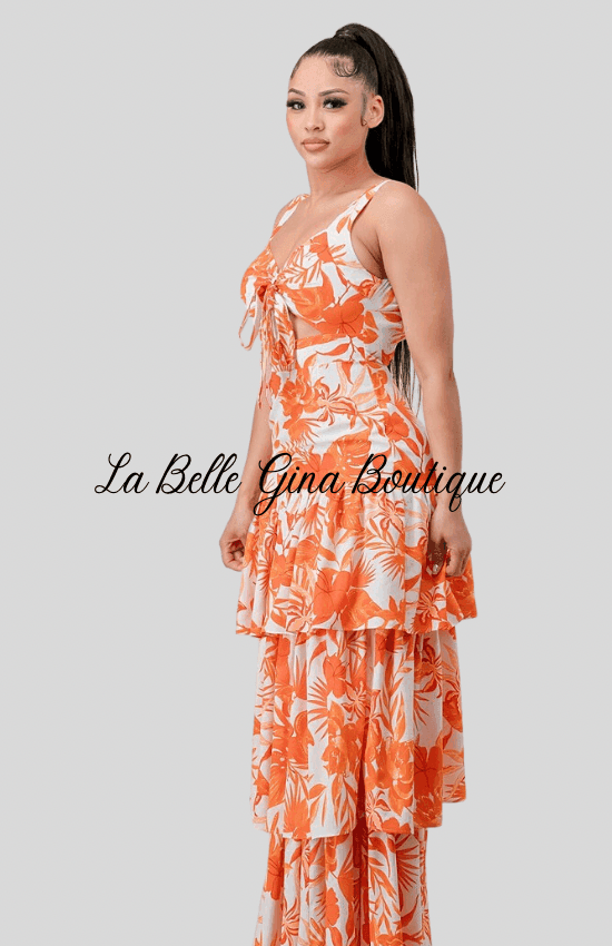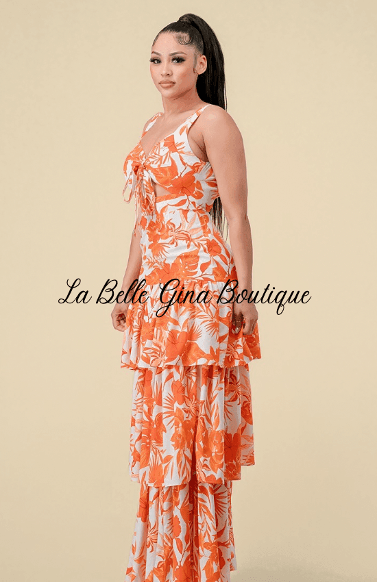 This orange front tie detail layered maxi dress.featuring floral lovely dress envy of any occasion