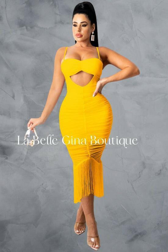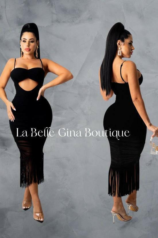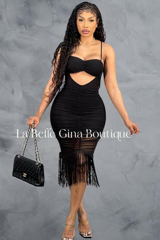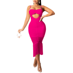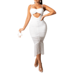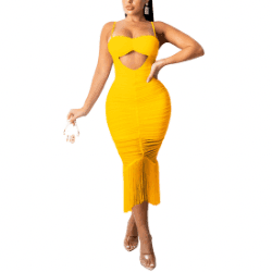 Elevate your wardrobe with our pure color fashion sexy sling strap wrapped chest hollow flow beard mid-skirt dress. This breathtaking design is created to make every woman feel empowered and beautiful. The dress radiates confidence and sophistication. Its mid-skirt length balances timeless elegance with a modern twist.