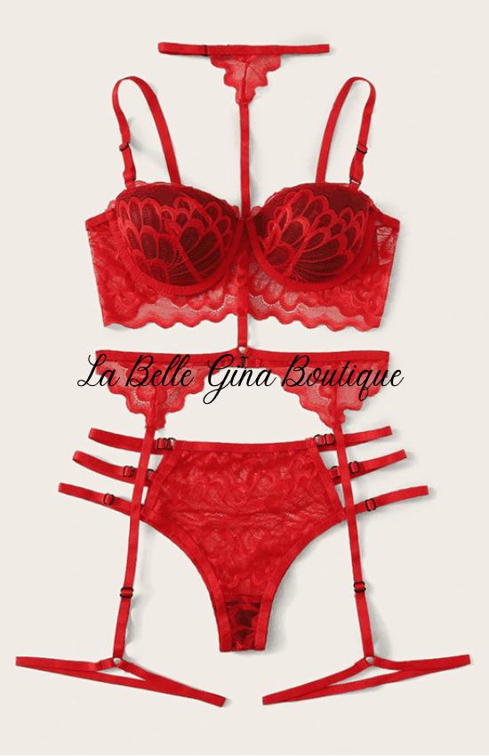 Sara Three-piece cup push up bra lingerie-red - La Belle Gina Boutique