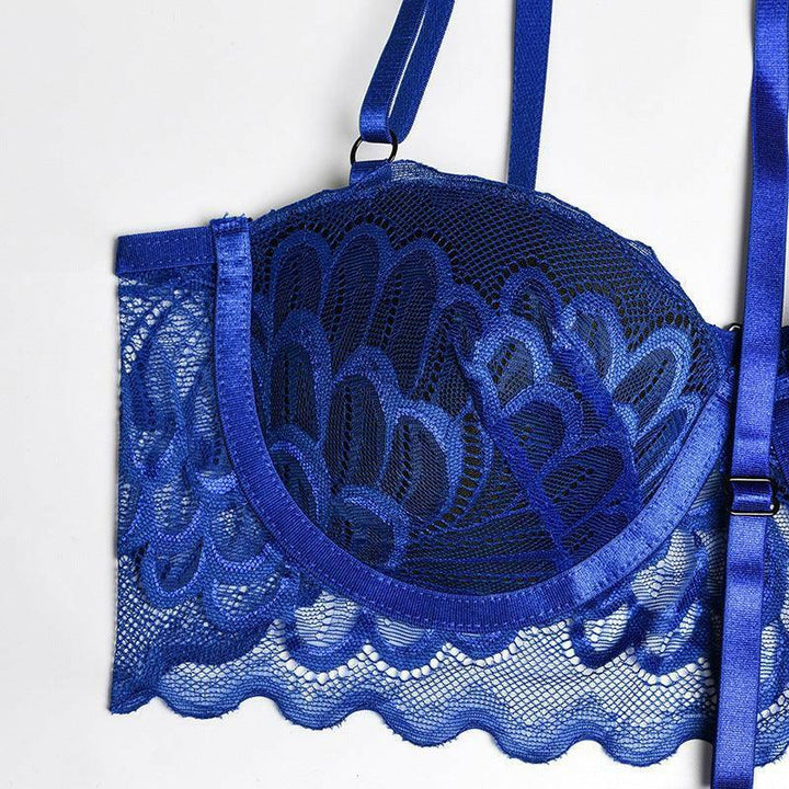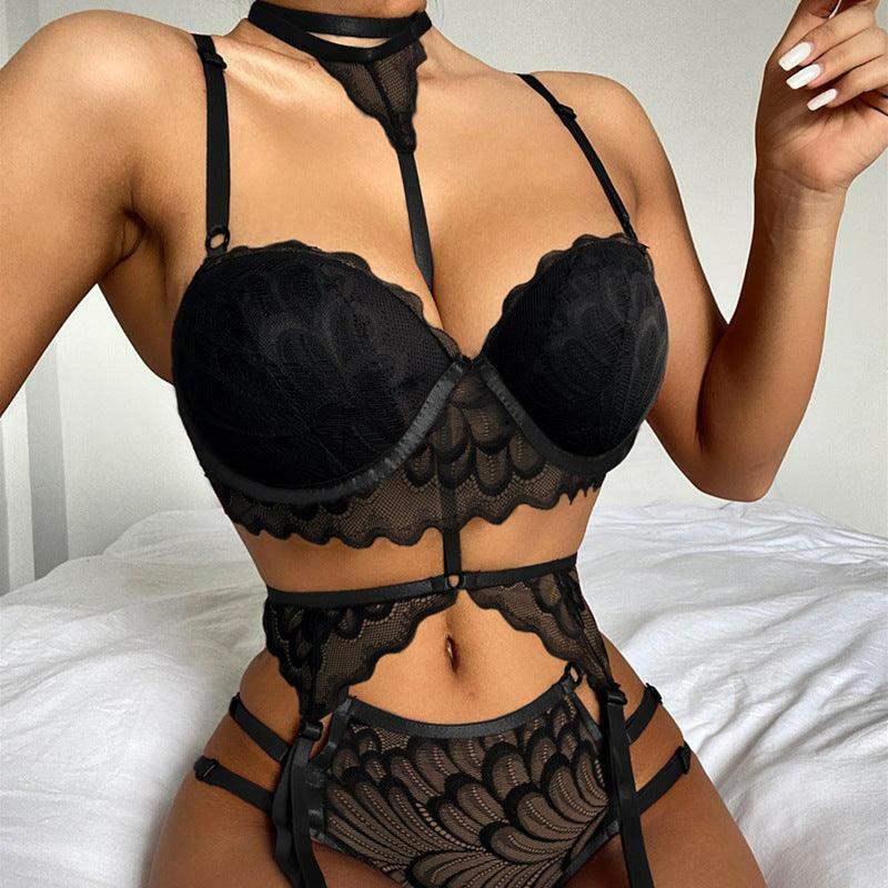 • Features: Floral Lace, Scallop Trim, Garter, Choker