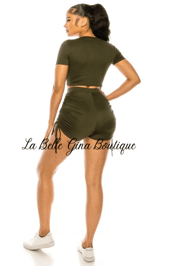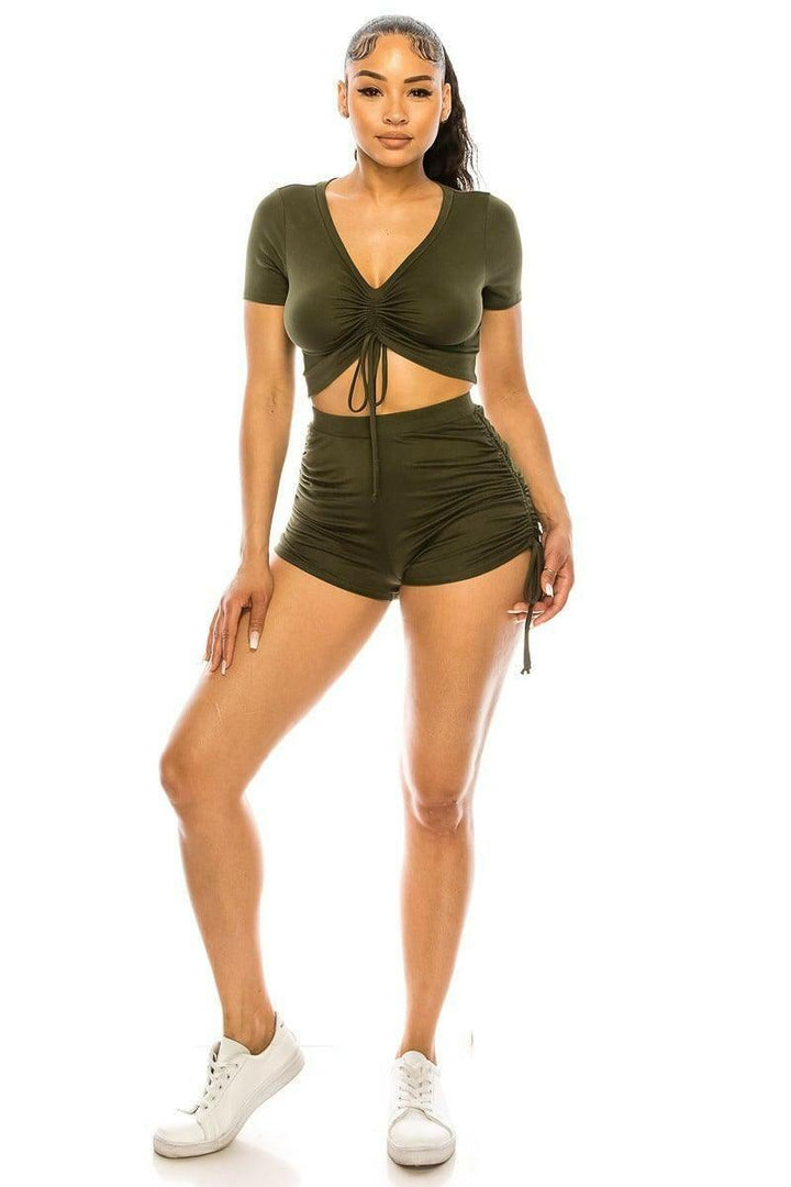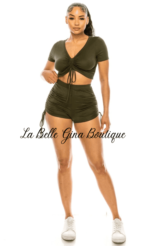 Sara V Neck Ruched Crop Top And Shorts set - La Belle Gina Boutique