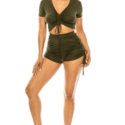 Don't settle for ordinary when you can have extraordinary. Get your hands on our Sara V Neck Ruched Crop Top and Shorts set today and experience the perfect blend of comfort, style, and confidence. Upgrade your wardrobe and make a statement wherever you go.