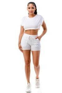Sasha crop top shorts front pockets set
