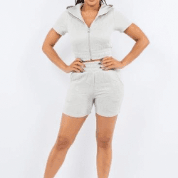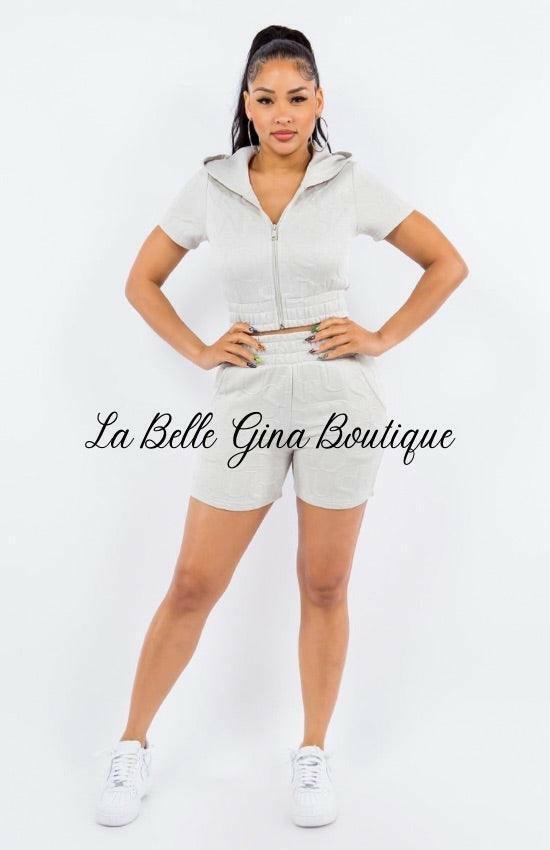 Sofia hem finishing on hoodie and short set-soft Grey - La Belle Gina Boutique