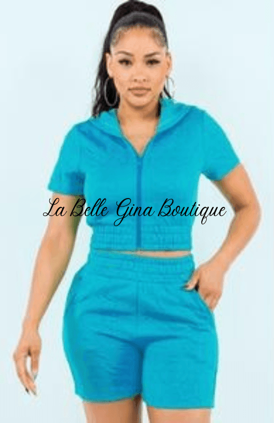 Sofia hem finishing on hoodie and short set-Blue - La Belle Gina Boutique