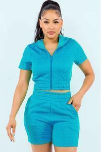 • Short sl sweatshirt with shorts set, drop shoulder, zip up, sweatshirt with hoodie