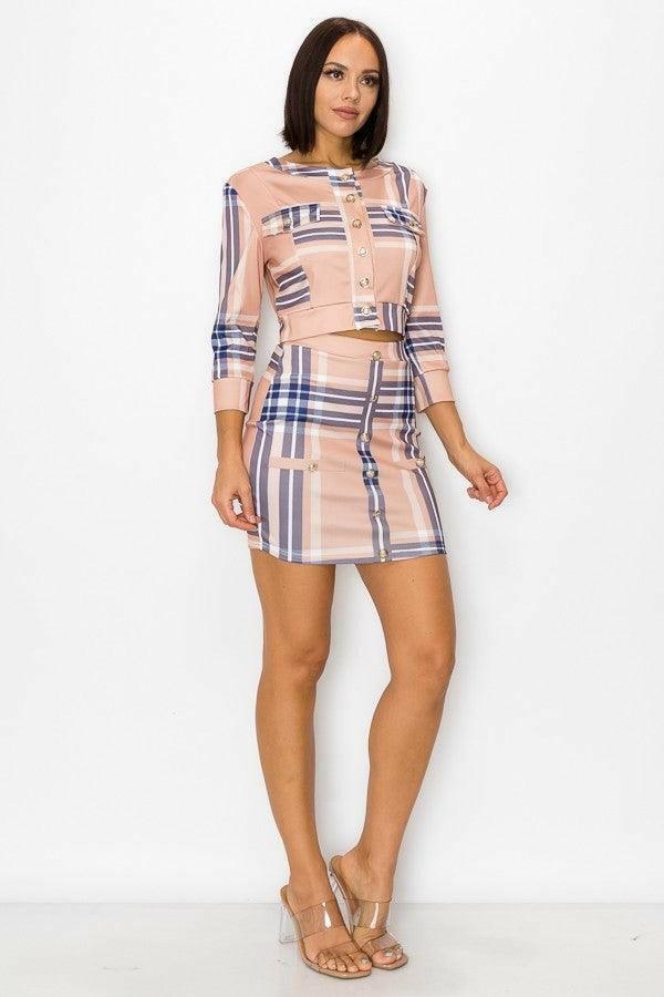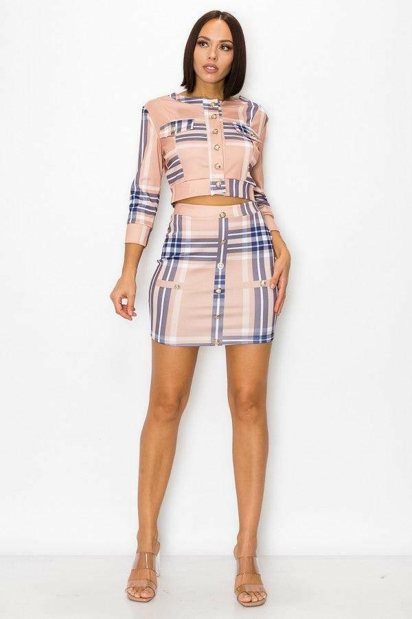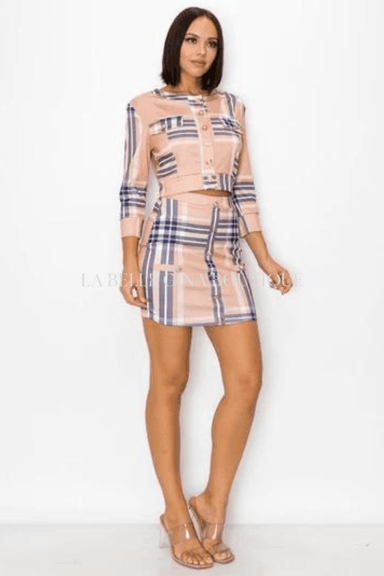 Plaid Crop Top & Mini Skirt Set – Chic Two-Piece Outfit | La Belle Gina Boutique